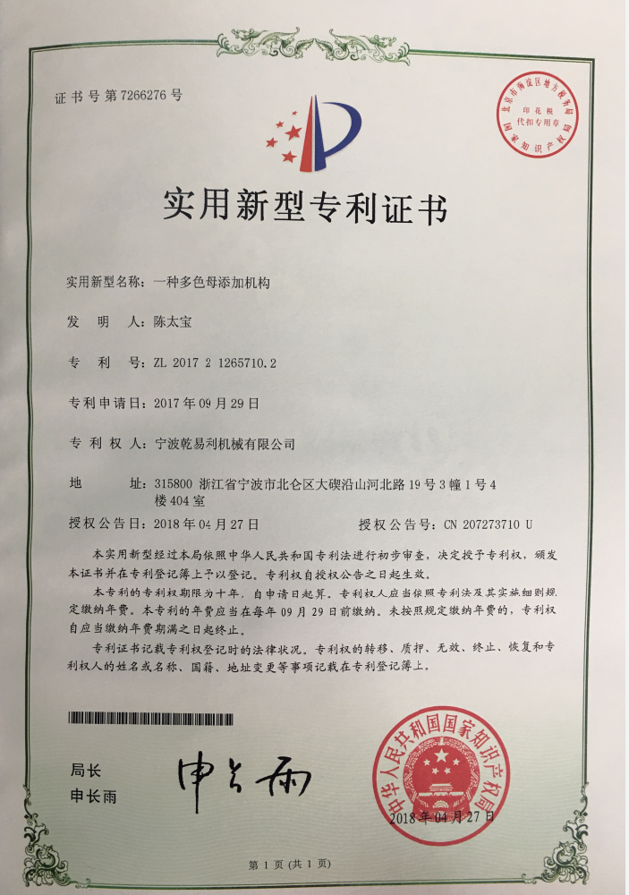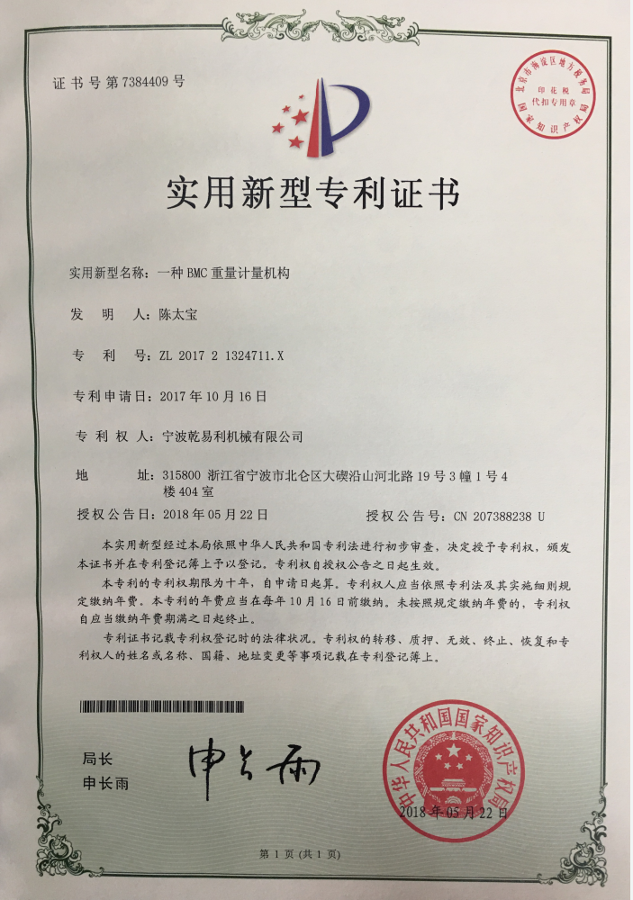 • 實用新型專利證書01
